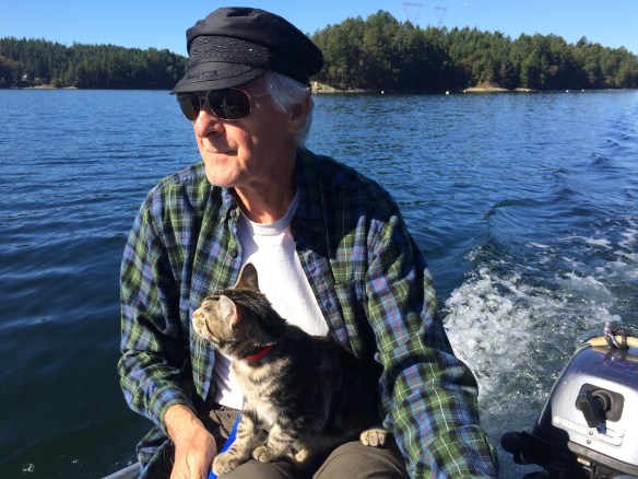 It is actually very comforting to visit these places where we have been before, you know where you want to anchor, where to tie your dinghy, this is at times a real challenge in Ganges, and what places on land you want to explore. In Ganges , the most important thing for me was the Saturday market, truly the best market ever!!! Just the vegetable stands alone are breath taking, so much choice, and everything is fresh and clean, and truly wonderful. I was after garlic particularly , i never seem to buy enough of it, this year again, i bought a dozen very big bulbs, right now, they are all gone!!! But we headed for the stands with the baked goodies first, and fresh coffee!!! Will and Trish’s boat, Shadowdancer II, was anchored near us, we knew they were here so we all met up later on in a very funky coffee shop, ( way too much coffee for me), and exchanged stories and memories already made on this incredible journey. Will and Trish have a car here on Saltspring island, so the next day they took us hiking up Mount Maxwell, where we had a most beautiful view of the island and the bays below. I think Gail enjoyed himself!! We left Ganges on the Monday , the 25th and headed to James bay, Prevost island, where every year we collect apples and plums in the old orchard. We dont know what kind of apples they are but they are firm and sweet, and make a doozer of a pie!!! We took Gail hiking up to the light house, a wonderful walk, where we could gaze down at our boats.