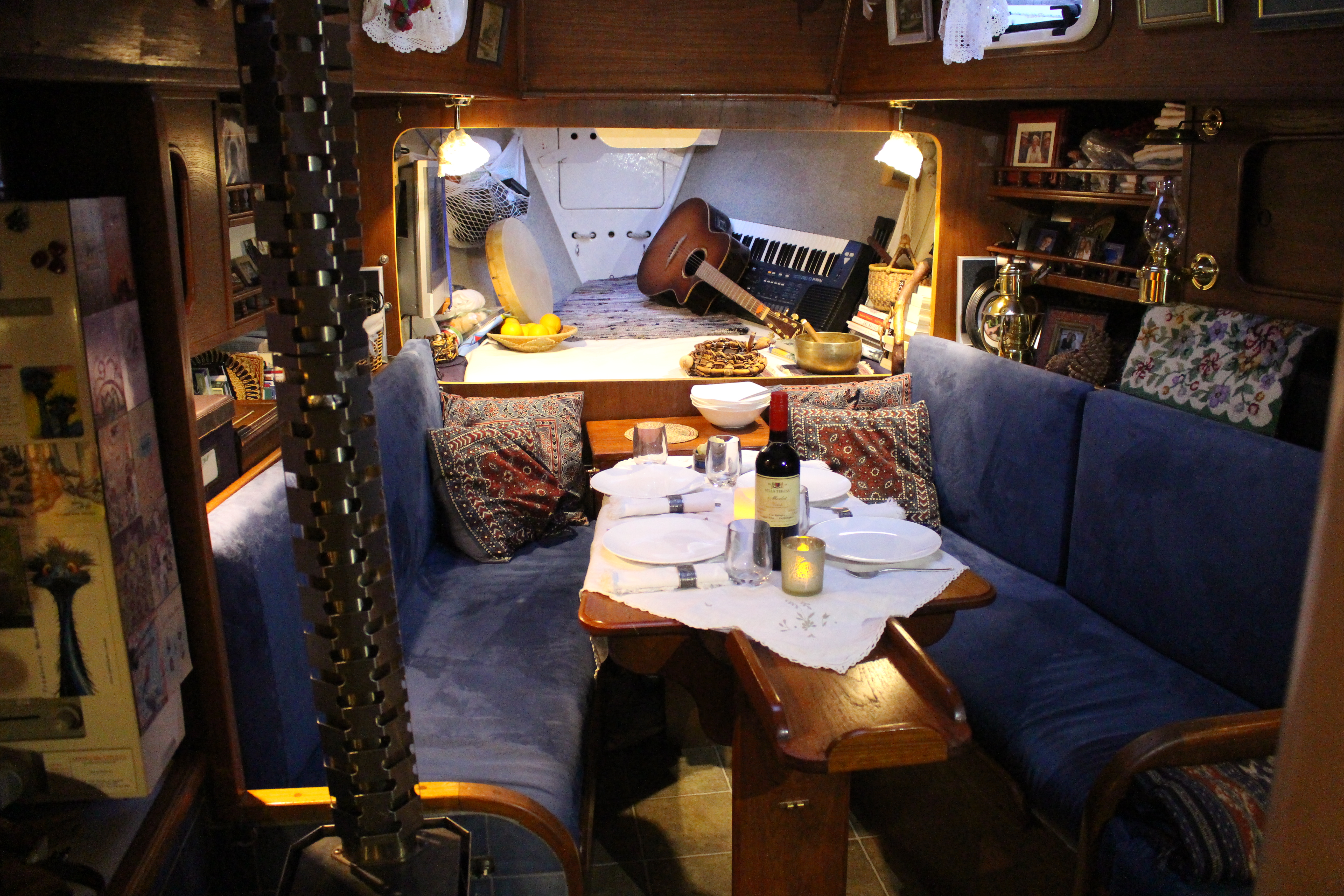 We have many boater friends, and during the winter months we get together for dinners and playing card or board games, i love making the boat cozy and inviting and i think a good time is held by all. I just wanted to show how Curtsy looks inside, all cleaned up nicely and wonderful aromas coming out of the galley, wish i could post the smell…..